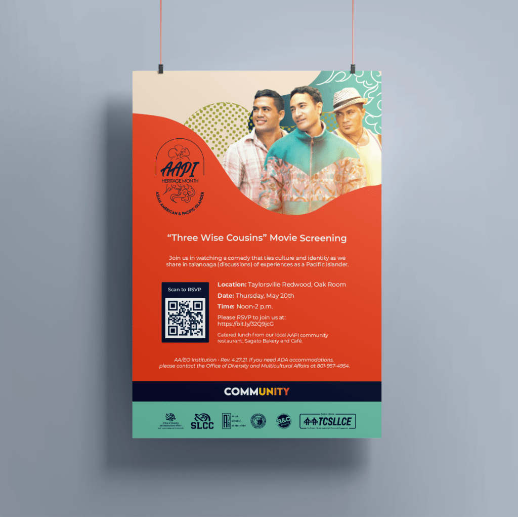 I worked with The Office of Diversity and Multicultural Affairs at SLCC to produce designs to market Asian American and Pacific Islander (AAPI) Heritage month events. This project required several marketing assets from posters, to social media graphics, website headers and more.