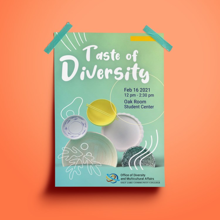 For Taste of Diversity, I used available 3D models and designed them in Adobe Dimension to create a playful plates asset. Then I used illustrator to complete the work.